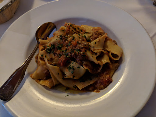 Food is pretty darn good, service is amazing. Wish they had more vegetarian options on the menu, but Im sure theyd work with you if you wanted something without veal or chicken. Great wine. Ill be back.