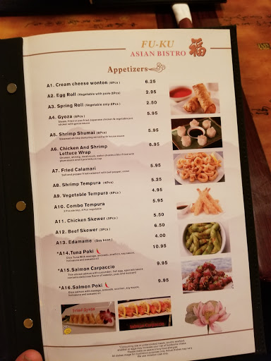 Great service, great food! Loved their hot and sour soup, FUKU roll, and spider roll. They brought complimentary crab rangoon that was very good too! Will be back again!