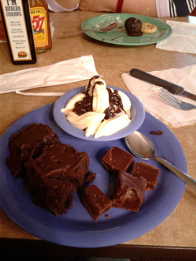 No matter what your crowds hungry for you can be pretty sure that theyll be happy with the food selection! They serve up your old time comfort foods, to Italian dishes, then theres the fried chicken, and mashed potatoes and gravy and yum! Forgot all about the grill area where the cooks will fry ya up a steak just how you like it! This is also where youll find the roast beef, ham, meat loaf, pork chops... I could just keep going on about the meat selection. But for the healthier eaters and those who wont eat meat, there got an incredible selection of vegetable dishes(and of course the mashed potatoes), they also offer an array of side dishes guaranteed to make ya smile! Then the salad bar is nothing to shake a stick at either. And once youve made it through all of these tantalizing temptations, your still not quite finished. Now for the dessert bar - theyve got a little bit of everything; they have cakes and pies, cookies and pastries, ice cream, frozen yogurt ; a chocolate eaterfall! Its all right here at Golden Corral!!