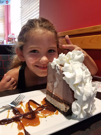 They have great burgers here! I LOVE the Whiskey River BBQ burger. Its my favorite on the menu! And their special seasoning that they have on the table goes great on the endless fries! Although I have never had one, but they do offer shakes and desserts here as well. Its a fun atmosphere, they even have a bar area for adults. The rest of the dining area is family friendly. And from time to time I believe they still have the Red Robin mascot come out and visit the kids (but dont quote me on that). All and all its a good place to get good burgers.