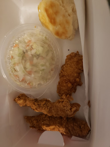 We decided to get crispy strips at this KFC for dinner - it has been several years since we have had KFCs chicken and we remember it as being pretty good. My, how things have changed. The crispy strips were flabby, over-salted strips. My best description is YUCKY. I must admit that the biscuit and cole slaw were pretty good and the potato wedges OK. Nonetheless, I think weve had our last meal at KFC. Too bad - in the past, it was good.