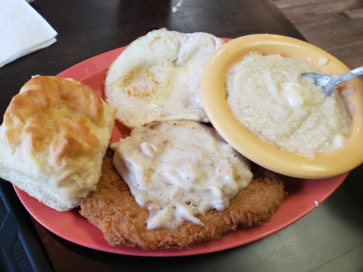Good southern breakfast. Fried pork tenderlion is super good. Sausage is better than the bacon. Order the blueberry pancakes well done.