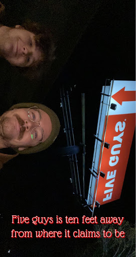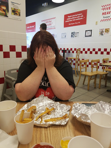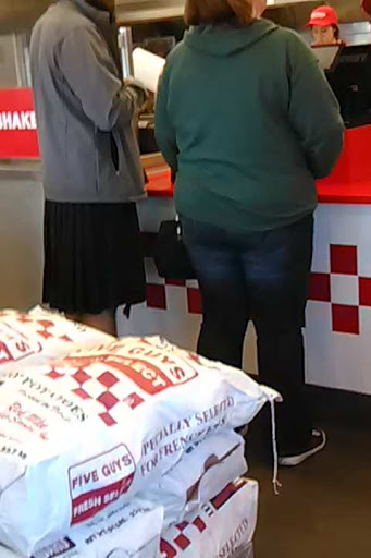 No light in the womens restroom. Had to wait forever for our burgers, which were overcooked and skimpy toppings. Still, its a Five Guys, so cant be all bad.