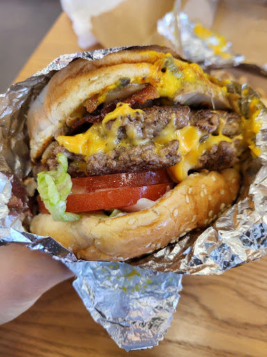 Best burgers in the area! Great food, excellent service, and usually completes your order quickly. Plenty of options when it comes to customizing your order. With each order, you get a lot of extra fries. There is a wealth of fountain drinks to choose from. Condiment and fountain drinks counter needs more space as their usually overcrowded, but thats true for nearly every Five Guys restaurant. And while this is nitpicking, why put the condiment and fountain counter near the bathrooms? Otherwise, its Five Guys, need I say more.