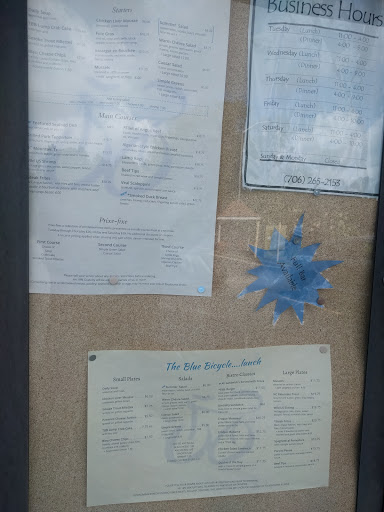 My girl and I decided to make an impromptu afternoon shopping trip to the North Georgia Premium Outlets on July 5th. Because it was later in the day, we started looking into finding a local restaurant; a gem, as we like to call them, so we would not be relegated to eating at one of those all too common suburban cookie cutter eateries. We came across The Blue Bicycle and checked out the reviews which were mostly positive with a few not so lustrous in which people complained about poor service, the lack of a child friendly menu and, of all things, the speed of which bread arrived at the table. Our experience was lovely. I was sure to test the critics by asking for a basket of bread straight away. It arrived very quickly and Chris, our server, was very friendly, courteous and attentive with out being too much so. The food was surprisingly good, and I say surprisingly because most out of the way, small town restaurants that we visit on our travels simply do not serve the quality of food as The Blue Bicycle. As for the lack of a childs menu, there is one available. If it isnt immediately provided, ask for it... I dont need one and, honestly, was glad to not have to worry about the possibility of an unhappy child ruining my meal. The ambiance was a little different to be sure but our time there was very well spent as was our money.