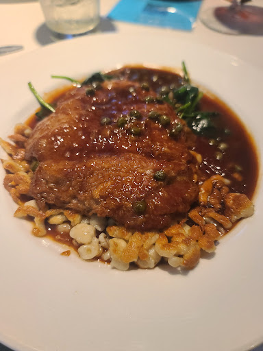 Crunchy spaetzle- Super-watery mussel broth with 50% of the mussels not cooked enough to open- Tough, chewy, salty veal Crab cake full of breadcrumbs We didnt finish anything we ordered. Very disappointing food execution for what could have been a really nice experience. Service was friendly.