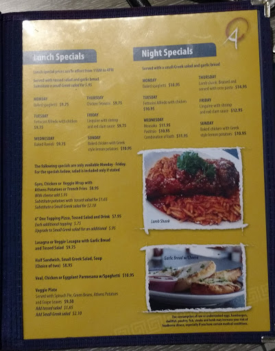 Ordered a Greek salad for pick up. Was shocked at how small the container was. Not an $8(+tax) salad. I even asked the guy ringing me up if this was the proper size, and he confirmed it was. This is $5 maybe $6 amount of food. When you order an entree salad you expect something more than a side salad. This was my first time trying Athens, not sure if Ill return if this is a representation of the quality you get for your money.