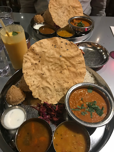 This is not your typical Indian restaurant-- street food is the theme and they do an amazing job! Fun and lively atmosphere. Went here on a Friday night-- parking is a bit tough, but there is a decent amount of street parking nearby. They do not take reservations, so be prepared to wait a little. On Friday and Saturday nights they sell a snack in the waiting area (5 mini- puris for $2.50. Not too spicy, a tiny bit messy to eat, but fun while you wait). It is easy to over-order because there are so many fun things to try. The food re-heats well so dont let that stop you from trying lots of things. Good drink menu-- definitely recommend trying the "Aromatic Rickey" as it was a personal favorite at our table. If its your first time, I would recommended some non-spicy items (Matchstick Okra Fries, Green Mango Chaat) mixed in with some great spicier items (Chicken Pakoras, Bombay Chili Cheese Fries, Kathi Kabob Roll). They also recommend the Sloppy Jai, (which come on a bread roll) but we realized that the meat is the same as what is put on the Cheese Fries and we loved the crispiness of the fries. They also serve Thalis for those looking for a more traditional meal of rice, meat, veggies, and a dessert all served on a platter in individual silver dishes. Hands down, one of the most delicious thalis that I have ever tried! Service was excellent and I cant wait to go back soon!
