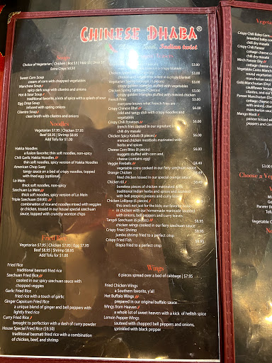 Delicious food. Yum! I drive clear across Atlanta on a regular basis to sate my cravings. For those who have never had Indian-Chinese cuisine, it is what develops when a Chinese community settles in India for a over a century. The food borrows from both traditions to create its own. The Chicken Manchow Soup and the Chicken with Manchurian Sauce are my personal favorites in addition to being Indian-Chinese staples. While the food is the star here, the interior of the restaurant is clean, nicely appointed and well done. Chinese Dhaba is a restaurant where you order at the counter and get the food on Styrofoam plates. The informality of the plates and cutlery is soon forgotten once you taste the excellent food.