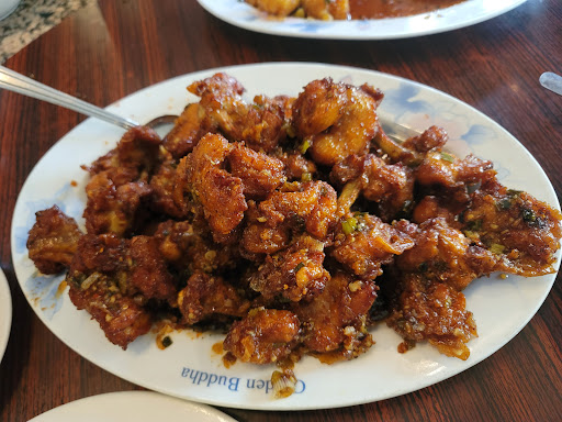 Golden Buddha is an interesting Korean/Chinese restaurant where it serves both americanized chinese food and traditional chinese/korean food. I have come multiple times for their black bean noodle (jjajjangmyun), which is one of the better ones in greater Atlanta. Princess chicken is a nice spicy and sweet chicken. Their portion is huge too! One bowl of the noodle and easily feed two. The place looks like a traditional chineae restaurant. Nothing too fancy, but presentable nonetheless.