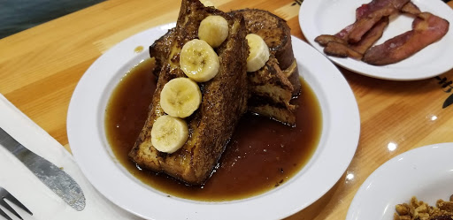 This place doesnt hold a candle to the original location. We went this morning, served by an anxious server who messed up our order and my companions were done by the time I got my plate. It looked like it was all thrown onto the plate in haste, and the bread was soggy and the potatoes were literally burned black! The space is big and open and loud. Chairs barely fit under the table. Expensive and not worth it AT ALL. Our server aplogised by saying " I should drink more coffee". She didnt take the item off our bill, as any normal server would. Clearly customer service is not a strongly held concept. We will NEVER go back. This place can only hold on to its reputation from the original location for so long
