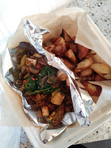 Well the service was good. But the grits was Luke warm and no flavor. The soy so sage was flattened and not worth $2.79 usually most every where else gives you two. Here they flayed one to make it look larger(thats just being cheap) And the sweet potato biscuit was great but no apple butter like the other location. My friend however got the tofu scramble and lived it.