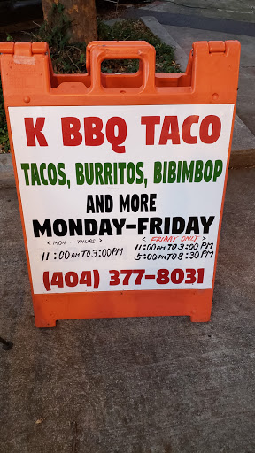 Located in downtown Decatur, this place is the best Korean food in the area. K bbq tacokorea is a fusion Korean, Mexican joint. They make Korean bbq and then put in in nacho, taco, or burrito form. They also offer a classic Korean dish, bibimbop (if youre not totally into the fusion thing). The food is absolutely delicious. I had the spicy pork taco (my fav), the spicy chicken taco (same flavor as the pork; pork is better), pork belly kimchi taco (more fat than meat on my taco), and the spicy pork bibimbop burrito. I loved everything! The flavors come together so well. Im a huge fan of spicy pork and this place did not disappoint. That burrito is very filling and will leave you with a smile in your face. Though my pork belly taco had a lot of fat, the homemade kimchi makes the taco delish. The owners of the restaurant are an older Korean couple. The sweetest people youll meet. They are both working their butts off and will entertain you with interesting conversation if theyre not too busy.