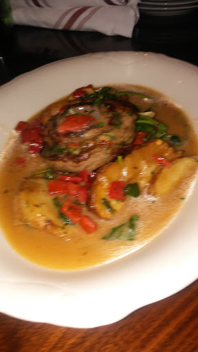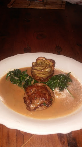 This review is for the Groupon special. I read other reviews and really wanted to like this place. But I just cant. The Groupon deal is hard to beat - 3 course meal with wines for TWO for $49. The appetizer, specifically the polenta, was not good at all, though the salmon wasnt bad. The steak I had with the main course was AWFUL (tough, lots of fat). The au gratin potatoes were greasy and tasteless. My wife had the pork tenderloin and it was decent. The dessert was okay but a bit small. Now for the service: Our server was playing both server and hostess to EVERYONE dining that night (there were maybe 6 tables). She was a sweetheart and did the best she could but I think she was just overworked. As a result everything was slow. Wines came after meals were served, and the whole experience was LONG. We were a party of two, and a party of 3 came after us and left before we were even served dessert. So yeah... nice looking place but I dont think well be back.