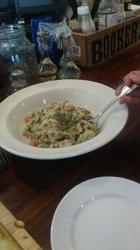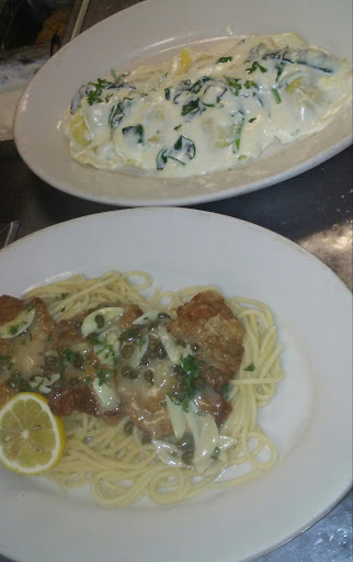We were in the. Decatur area and read the reviews. So. We anticipated great comfort Italian. We were starving and ordered crispy calamari . It was great just right, sauce was spicy, just right. We werent drinking, so ice cold water was perfect. The table was set with 5oz glasses. Way to small. Our waiter till fill our glasses at least 5x. I noticed water in old bottles was available on other tables. Dinner was served promptly. Chicken Marsala for the Hubby and Chicken Picasa for me. Each plate had 3 small thin pieces of chicken breast. It most likely was one large boneless skinless chicken breast, sliced lengthwise and then each half was crafted into 3 pieces. I kid you not. I have done that at my home, when I really had to stretch a chicken breast or 2. My pieces were thin, however my fork would not cut the chicken. It was tough. It also tasted blah. Like it had been frozen and microwaved. I was not eating that. Chicken Picasa is served with lemon slices, a great sauce and capers. I had 2 capers, no lemon or parsley. Sauce was mild and barely lemon. I was able to catch the hostess and returned the Chicken Picatta. I had paid extra $2.75 for a side of pomodoro spaghetti, instead of roasted potatoes . Since, it was okay, I requested Spaghetti and Meatballs . It was just okay. No visible tomato pieces, portion was small. Four meatballs were presented. Very tasty. Chicken Marsala had great flavor, but those same 3 little pieces of chicken. My husband enjoyed it, but he then ate 2 of my meatballs and the spaghetti portion of my first entree. We didnt order salad Caesar as it was $6.25. Garlic Bread service was offered at $3.95. The Pomodoro Sauce on the spaghetti side was the same "Tomato Sauce" as on my Dinner Entree $12.75. Our Waiter offered excellent service, for the 6 tables he was juggling. Pleasant and professional. When, he went to present our bill, he glanced at it and left with it. He returned and presented it to us. When we were almost home, I realized why he questioned it. It was HALF PRICE PASTA NIGHT !! My Spaghetti and Meatballs should have been $6.45 ! And the Hostess must have said No ! Attitude! !! I know this is long, but the quality of the food does not match the moderate prices with paltry portions of everything. Dont waste your money. PS. Restaurant is also non- Handicapped friendly. Stairs at both front doors. No handicapped parking or ramp from parking lot.