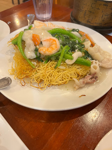 “Good Chinese food at very good prices.” Went here in a party of ten for lunch with a young Chinese lady that we know. She ordered for everyone to share. Cantonese menu. We had crab soup, seafood congee, beef congee, spicy tofu, garlic chicken, shrimp with walnuts, fried calamari and snow pea leaves. I am not usually a big tofu fan; but, I liked spicy tofu the.