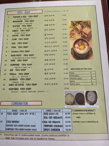 The BEST soon tofu in the United States. There.... i said it. Even better than bcd tofu house (gasp!) Very good service for a korean restaurant too. If they started serving fried fish with their soon tofu, this place would rate 6 stars.
