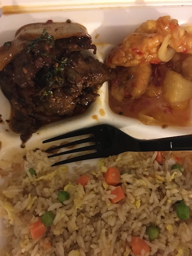 Was offer general tsos chicken so why not ended up getting it as a plate with chickens teriyaki and chow mein at the drive thru got home to see that I was served nasty black pepper chicken with chicken teriyaki and waited awhile for this in the drive thru while they tried giving me other peoples orders...