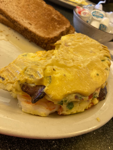 Great breakfast. Sampled the shrimp and grits (good, but wouldve enjoyed some sausage in it looks, French toast (very thick and very good), waffles (very thick), chicken strips (nothing special), and biscuits (dense while wheat affairs, not bad, but not the usual soft southern style). Wait time to get in during mid Sunday morning were long as the location was packed. But thats the sign of a good diner.
