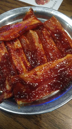 I came here to eat BBQ on a Saturday night, I waited an hour but that was fine I sat in their waiting area that had tables with my laptop so it was comfortable. When I sat to eat the waitress greeted me and brought me to the table. There the menu had plenty of per order meat selections, including a AYCE pork menu. I ended up ordering seasoned short ribs and Gal Bi. The selection of sides were average as I was hoping they had a more diverse selection. The server brought out the meat and she also prepared and cooked my meat on my grill as well. I was tempted to just say I can handle it as I have cooked BBQ multiple times in the past but I let the server cook as she was very helpful and very attentive coming back to my table regularly to check the food on the grill The short ribs were amazing due to the marinade they used and the Gal Bi was delicious also. Much better then just ordering the non seasoned meat offerings that I would normally order at other AYCE BBQ places. I highly recommend this place next time your in the mood for BBQ