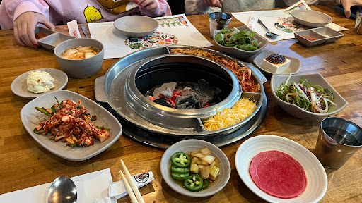I always like to find new places to eat; that usually doesnt end well. This place however was delicious and the service was on point! I ordered the spicy pork belly and the bulgogi. I like how the grill has slots for this egg dipping thing, and for this cheesy, corn thing that melts as you eat. They always bring out extra sides if you run out. The service was super quick. All the waiters work together, so it makes everything run smoothly. This isnt the most expensive kbbq Ive been to, but I can see how others would think it is over priced. I would recommend doing the unlimited so you get more variety, and a lot of it. I also loved how they play k-pop music videos on their TVs!