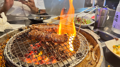Best KBBQ experience I have had anywhere. This place is different in that the grills run on charcoal rather than gas as most other KBBQs do. It gives the meat a different taste. Its also always entertaining to watch the guy come out from the back with a flaming bucket of charcoal to replace in your grill. Also, the service is the best ever I have experienced from anywhere. Our waiter was constantly bringing out things we needed and was always there to cook the meat for us. We didnt even have to worry about cooking the meat ourselves as you do at most places; we were able to just sit back, relax, and talk. I havent tried 678 so I cant compare, but I think from now on I will make an effort to go to places that use charcoal.
