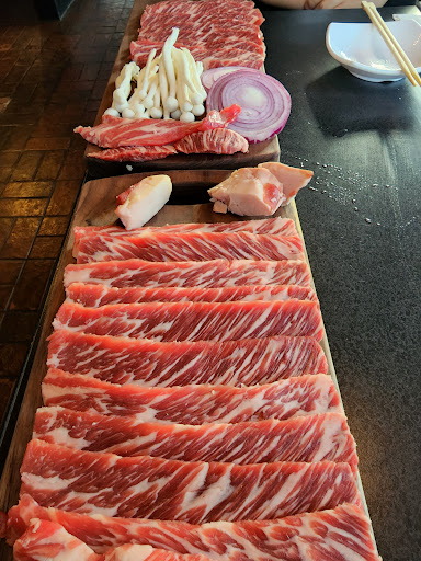 THIS PLACE IS AMAZING!! Okay. I just caught up with my breathe. I am not a local. Ive been there once or twice driving through Georgia. I absolutely love Korean BBQ. While I have an abundant selection in the DC-Northern Virginia area, they are often pricey (or normal pricing). This place deserve "amazing" because it has all the essentials and at a super-duper attractive price!! I went there with two friends on a late Friday night. The sushi section was closed, but we did not really care because we were there for the meat!!! It was a buffet style where you go out to pick all your (raw) meat. It looks kind of gross you are dumping raw marinated beef/pork/chicken on your plate they look like pig food at first. You then bring it back to your table, which every table is equipped with a grill and you just cook it (or the server usually will help you, but since we were pro, we just did it ourselves). I dont know how they can still stay in business because it is just too damn cheap!!! The servers there were very nice and polite (you usually get that from a Korean restaurant run by Koreans haha) and the place is super clean! They clean the grills afterwards and despite the fact people cook at their own table, the place is not smoky at all!!! I wish I live close by so I can go there everyday, seriously!