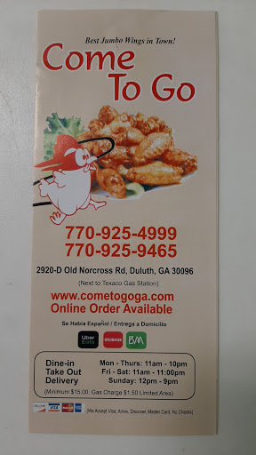 I have been coming to "Come to Go" for (3) years now and Iam never dissatisfied.This restaurant has the best fried rice I have ever tasted.Also they have great tasting Philly steaks,pizza,wings,and gyros.Their always friendly,respectful,and clean.So if you are hungry and want some good food please come to this restaurant and enjoy some delicious food.