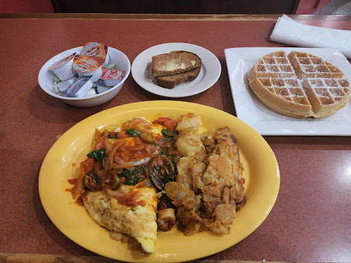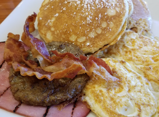 I am a sales representative and thus am I a lot on the road. I depend highly on places that are around me, when I am on location working. Let me tell you something, the place is not a franchise. Which is a huge plus, their breakfast platter?! Its insanely good and I do mean that sincerely. They offer a huge menu and what you order comes fast and abundant. Their big breakfast consist of 2 eggs, stack of to die for pancakes (better than IHOP) hashbrown casserole,pita bread,huge sausage pattie and I do mean a huge plate. All that for 10usd. Its worth the drive, service is lightning fast and proper. You need to try it, its hard to find a place that is not franchised. Its quality shows..