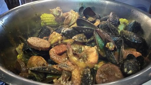 We all shared the mussels, clams, shrimp, king crab in the mild house sauce and it was meaty and tasty and good sized portions with potatoes and corn. Prices were spot on with market value. Waiter was kind of blah but he was there when you needed him and not when you didnt. I am definitely going back to try more of the menu. And, if you want lobster rolls (Saturdays only), show up for lunch as they apparently usually sell out. Suggestion for the owners: is it a seafood joint or a sports bar ? Decorate the surroundings with what is associated with the food fare. Take the jerseys and memorabilia home. The TVs can stay :D