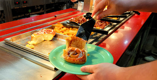 The Golden Corral at this location is top notch, from the way their servers greet you, always bringing you extra plates so that the food can keep on coming, to offering a huge selection of delicious food which will keep you eating for awhile. If you are going in for lunch, then its best to go in around 3:40pm, so that you can avoid paying full price for dinner, as when 4:00pm comes, they bring out the steaks, which is what you should get. The servers who bring you your plates and refill your drinks work very hard, they rush with multiple tables at a time, but they always put on a smile, so when you finish eating, do leave them with tips, good service they provide. Overall, the place is a fantastic place to eat, especially if you bring along friends and family, plus the prices are very reasonable.