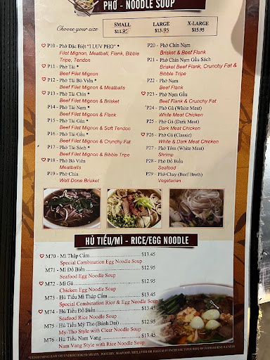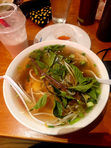 Visited my sister and B-I-L this summer and they took me here for some pho. I have to say, I didnt think it would be good considering Ive never heard of a pho restaurant being open for 24/7, but I enjoyed it. The atmosphere is cool. Its a great place for friends to gather and eat pho. We didnt have to wait long for a table even though it was busy around 9pm. We had about 11 in our party. Service was average. I had to wave a server down to order. He didnt seem to found to be working and didnt understand that half my party already ordered. We did however get our pho quite quickly. Nice decor, but raise the temperature! It was like 50 degrees in there. Also lower the music; its way too loud. Price is average. Nice addition is being able to decide between larger size bowl of pho. I got a large, but it didnt fill me up and looked like a small. Kinda disappointing. My mom got more noodles in hers than mine and she got a small. Overall its worth a try if your in the area or have a late night craving for pho.