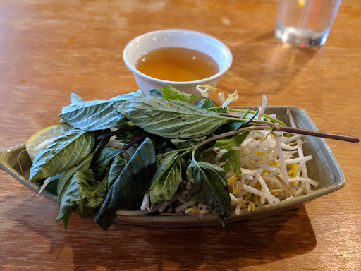 We entered the restaurant around 6:30PM on a Friday, and it was surprisingly empty. We got a table next to a window, and ordered immediately after we sat down and got drinks. The food came pretty quick: the pho usually comes first (since its just broth and noodles) and the rice/vermicelli/sandwich dishes usually come later. Overall, the atmosphere is really hip and modern. The restaurant is well lit, and the decor is really nice. This would be a suitable place for a dinner date or a late night snack since its 24 hour. I got kinda bored with pho, so I ordered the C30 broken rice with the 7 different meats (I dont know the vietnamese name) which sorta allows you to have a taste of all the cooked meats that the restaurant offers. It also came with picked cabbage/carrots, which had a sour pickly taste that complimented well with the sweetness of the meat. I thought the pork chop was juicy and cooked perfectly, and it was my favorite item from the dish. Overall the meats on the plate were a little too sweet, but thats just my opinion. The broken rice tasted amazing if you pour the fish sauce over it, and is a new taste for me than traditionally cooked rice. PROS: -Legit chopsticks. Not those splinter-y, cheap ones you find in most Asian restaurants. These are world-class, black-finish bamboo chopsticks you find in 3 Michelin star restaurants. Just kidding, but they were really nice chopsticks though. -Big portions. Youre gonna have a really hard time finishing the XL bowl of pho. Even though I noticed that they cut the portion from before, its still massive. The bowls so large you can probably hide a dead baby inside it, not like you would. -Variety. If youre not the soup noodle person, dont worry. They offer vermicelli (cold noodles), a ton of rice dishes, and vietnamese subs. These subs are amazing and cheap too, and I usually just order one to go to eat the next day. CONS: -Language barrier? I tried to order the banh mi and said it several times before the waiter was like "do you mean the vietnamese sandwich...?" Maybe I just suck at pronouncing things haha. I cant really think of any cons.