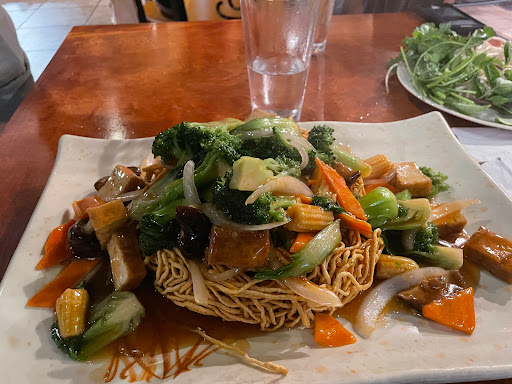 Food average. Service was horrendous! First and foremost when we order the food were told no stir-fry dishes only noodle dishes. We order the food and drinks and waited patiently. The food arrived sporadically, instead of everyone in our group receiving food at the same time we ended up watching each other eat. The BBQ pork dish did not come with the usual sauce and proper utensils. The drinks did not arrive since the incompetent waiter did not place the order. We had to remind them toward the end of the meal about our drinks before they brought them to us. I had asked for a bowl and was told "wait few seconds but never came." I basically had to grab one of them at the service station to get the bowl. Awful service is an understatement at this establishment. We were never asked how everything was or if we needed anything after our food was hastily dropped off. To top things off our joker waiter reminded us "The tips was not added to the bill." which I ignored. I was furious, as you can understand, tipping is the last thing on my mind. To make matters worse, the joker chased us demanding tips for the horrible service using the water bottle as an excuse. "Did you guys forget the water bottle? Anyways you forgot my tips." I dont think he even knows what TIPS stand for "To Insure Prompt Service." *******Managers or owners train your staffs- they are incompetent, at this rate youll be out of business eventually *******Potential customers- Avoid this establishment if you dont want disappointment.