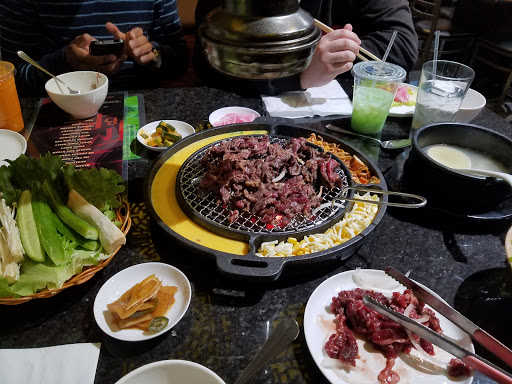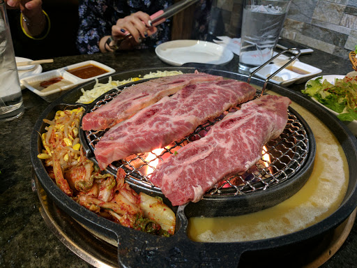 Arrived there at 9 o clock on Saturday, didnt receive a seat until over an hour later. Ok I couldnt blame them for that, there werent enough tables. When I sat down, it took me about 20 minutes for someone to get me tongs (after I asked several times). Then about 20 minutes after, I finally received scissors after asking as well. I stared at the empty grill for a good half hour before asking several people to bring more meats. On top of that, they kept bringing me the wrong meats. Wtf I am a paying customer and yet this service is atrocious!! The bulgolgi was good, short ribs had no flavor which is a disappointment and the rest I cant remember because I was so pissed over the service I didnt even care to eat anymore. The servers seemed nice, they were running around everywhere. Im sure theyre understaffed. But seriously, this ruined our Valentines Day dinner.