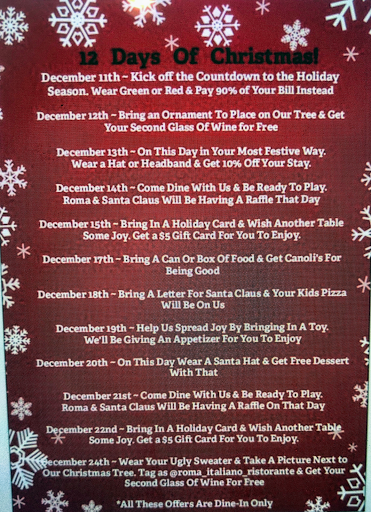 Roma is the BOMB! Ill be back for sure! We were craving Italian and Google pulled up a place that I have not seen before in my own neighborhood. Biting into that garlic knot dipped in the delicious sauce I was done! There was none left for anyone else! Portion size are huge and the food is amazing. Everything we eat had me feeling like I went back home to NYC. Even the Frank Sinatra music in the background. Great place, no wait, kid friendly, staff was amazing :)