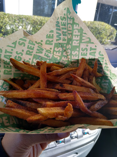 I was so extremely bummed out the first time I tried this location of Wingstop. My last house was also near a Wingstop and it was awesome. Although Wingstop is a little pricey for wings, I never had a problem dishing out cause it always tasted good, was extremely quick and good service for a fast food chain. This location, the exact opposite. They never get the pick up time right for pickup - either Im sitting there for 10-15 minutes after Ive waited at home or the food has been sitting out long enough to get cold. Forget about it if you walk in, youll be waiting atleast 25 minutes on a slow night. The quality is just... bad. Theres no uniformity in the quality of the wings and especially the fries. A cook needs an exact time of frying to get it to the right consistency; more importantly, the entirety of the back of the house staff needs to understand this as a uniform measure. The food is always undercooked and always has the wrong amount of sauce (either bone dry or soaking wet). The front of the house is clearly disgruntled, poorly managed and just trying to get to the end of the shift; so its not surprising that they are rude to the customers. Ive been here a few times and every single time Ive been disappointed and felt like I got ripped off. For such low quality of service, food standards and overall taste - you should be paying half as much. Wingstop corporate should be alarmed, for whomever the franchise owner for this location is - they clearly have some serious management issues and are causing serious harm to the brand.