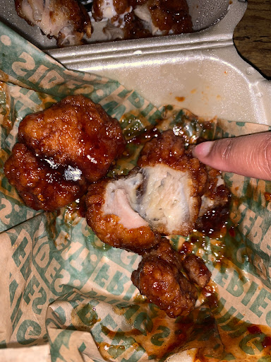Oblivious staff. Tables never clean, they never have the sweet tea filled, if they do its almost bone dry and you cant even get a second refill. Placed an order to go over the phone one time. Got there and they said my order was never taken. The place was not busy at all makes me wonder what happened. Then I had to wait a good 25+ minutes on my order that I placed over the phone but had to re order in store. Ive been in great wingstops. This is not one of them. Waited so long for my order and my chicken was still under cooked. Broken wings to top it off. I will never go back to this wingstop ever again.