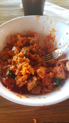 Fantastic table service - food is fresh and made to order. The concept is great too - Korean-Mexican fusion creates some great grub. There is only one thing holding this location back. Are you getting takeout? Avoid. It seems like they give you lunchtime leftovers and cram it all in containers so small everything ends up mashed together in the end. A shame too since the food is great but often busy so table service isnt always an option.