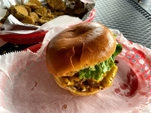 I pretty much ate here religiously every Friday during the summer. You wouldnt think anything of the place by looking at it, but I think that adds to the experience. During the lunch hour it is super crowded. Indoor seating is almost non existent, but they have a decent amount of outdoor seating. Definitely worth a look if you want to try a locally owned folksy type establishment. The burger is good. You can tell it is handmade due to the inconsistencies in the patty. Kind of like a five guys, but maybe a little better. If you have a big appetite I recommend getting the double, because the single will easily be drowned out by the bun and condiments ! Toppings are always up to par, never any old soggy tomatoes or lettuce or anything like that. All the veggies got a good crunch. Definitely a casual, average all american type menu. It is not quite as fancy as Yeah!, Flip, or Farm Burger..but you can still get a veggie or turkey burger. I also like their chili dogs ! Their fries can be a hit or miss though..I like them but a lot of people complain about them being overcooked or too soggy or over seasoned so maybe specify how you like em when you order ! Also, two people could easily share one order of fries During peak hours, customer service suffers a bit. They do what they can and I never have any complaints but just dont go in their expecting 5 star service.