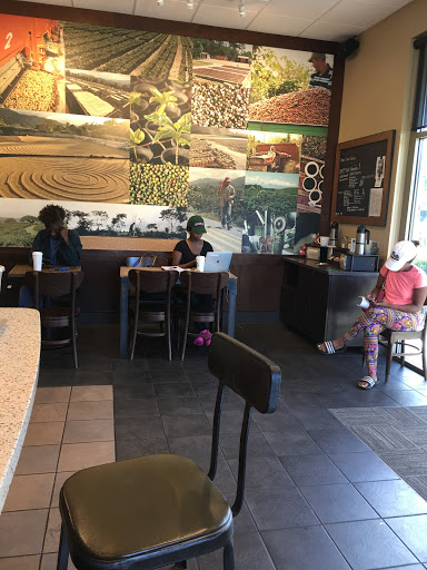 I come here because the location is convenient. The staff is very friendly but the service is very slow. The establishment is always dirty. Came back a few days after my original post to do some work, the staff was so loud. I hate to leave reviews like this because they are all so friendly but they carried on with personal conversations that everyone in the establishment could here. I know all about their last dates, plans for the afternoon and even which starbucks drinks they dont like. Good location, very friendly and upbeat staff. Just need to work on professionalism and cleanliness. I will come back another time, maybe it will be better