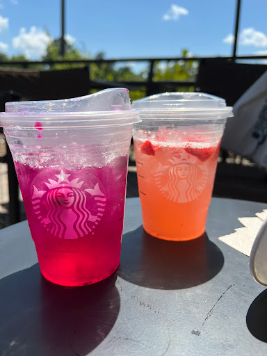 Hit or miss Starbucks at best! Slow drive thru.... I have never seen a drive thru as slow as this one. The service is really nice, no complaints because everyone is truly friendly when it comes to customer service but my goodness why the slowness, no one has time to wait 15 + for any products served at Starbucks! I always get the double shots on ice with light ice in Vente size, hence light ice means the cup does not come completely filled, which means consumers are getting ripped off by Starbucks since most of their cold beverages are mostly filled with ice and not liquid....