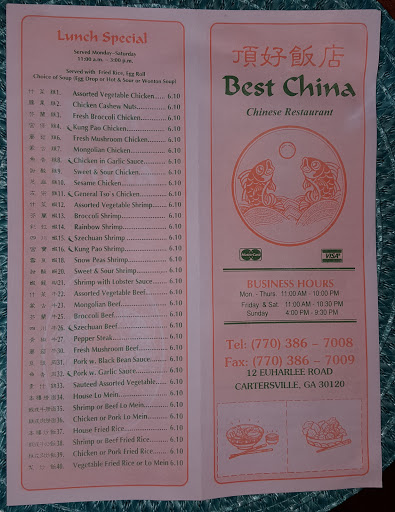 The little boy who works the front of the restaurant is EXTREMELY rude-he looks to be all of about 11 or 12, and just stares at you. No greeting when you walk in, no "thank you" when you leave, hes just creepy as hell. Not sure if this is bad parenting skills or if they raise him that way on purpose. Last night when I tried to order off the takeout menu he wouldnt key in my order on the register, and when I asked him "are you remembering all this from memory" he just looked at me, crossed his arms and leaned against the counter like he refused to serve me. I left and went to Ming Moon, and I will NEVER go to Best China again