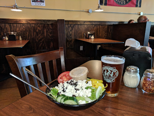 Really great atmosphere! The patio dining was wonderful. Pizza was a bit over done but overall the meal great. My husband had a slice of the Hercules abs a Ceasar salad. The dressing was excellent as was his slice. The Italian sausage was spicy and delicious. I ordered the market salad which had scrumptious tangy vinegarette. The one downside to tonights meal was the loud unruly children.