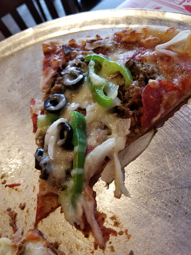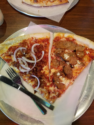 Love the atmosphere, employees, lunch prices, and best of all the pizza! Not typically a fan of thin crust/NY style pizza, but I love coming here, its a great local pizza joint. Large slices, 2 fills me up, and I eat a lot.