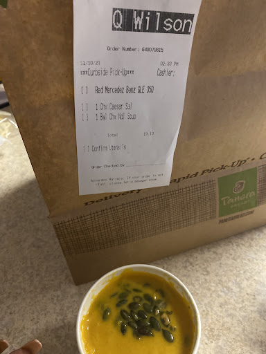 I usually have a great experience at Panera since I dont eat out often. But just a warning be sure to ask if theyre serving baguettes or bags of chips. Placed a large order for seven meals it was given seven bags of chips instead of the baguette that we actually go to Panera for. Drive-through wont communicate that to you. They just give you the chips or whatever they have to throw in the bag. When I called to speak to the manager the following day since the store was closed when I went back she asked me " what would you like me to do" instead of just offering to fix it. Kind of sad theyre built on bread and not customer service.