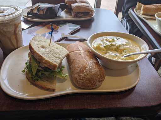 We eat at this location a lot and until today our experience has been good. Sadly, today was quite confusing. There was a note on the entrance door explaining that due to a shortage of avocados they could not offer that ingredient. Had I know that I would have gone by Kroger to pick up a few for my sandwich! When my husband ordered his sandwich he was told they had no apples for the apple slaw in his sandwich. No offer was made to substitute - and what does avocados have to do with apples. The tables were dirty, the coffee lukewarm. I am sorry that I have to write a negative review as we enjoy eating at Panera Bread. We will think long before going to this location again.