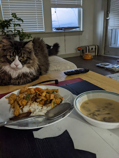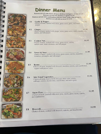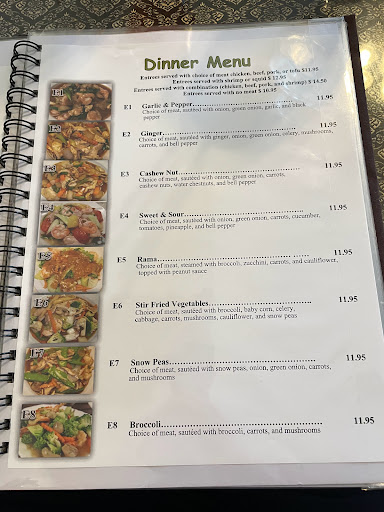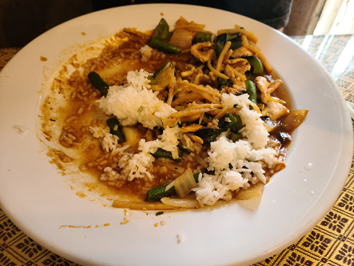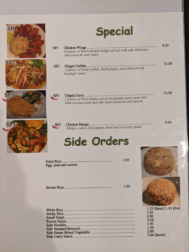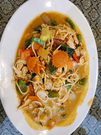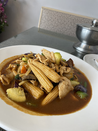 A family owned business, the people are very friendly and you feel at home and relaxed. The ginger chicken is great, lots of fresh vegetables and julienne ginger strips. Sweet and sour is also great. You can get 5 levels of spiciness, up to Thai Spicy (no. 5). A crispy vegetable spring roll comes included with lunch. The vegetables are always crisp and fresh. If I have asked to replace a vegetable in a dish with another, they have always accommodated. Everything I have had here is very delicious and very healthy. My wife loves the seafood soup, which comes with a small flame burner underneath it to keep it warm, when you order the pot. All of the sauces and broths are authentic and perfectly seasoned. We love going here.