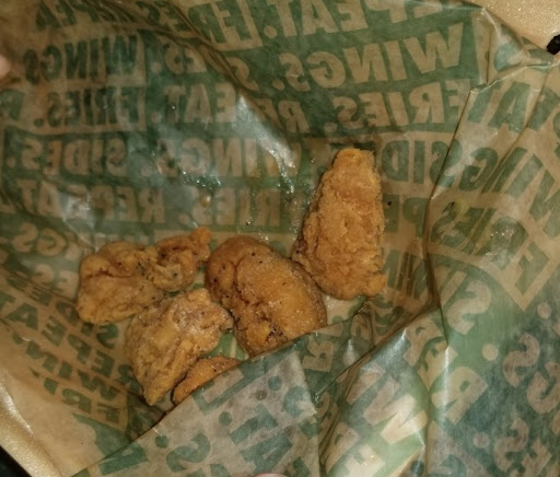 I ordered "On-line" and was glad that I did! The ordering in the restaurant had at least 15-20 min. wait. The wings are the perfect size and were cooked perfectly, but there was NO SALT OR SEASONING ADDED to the wings! Even with the delicious sauces they had no taste! That was a huge disappointment. But overall, it was palatable. I hope that they will soon realize a pinch of salt goes a long way!