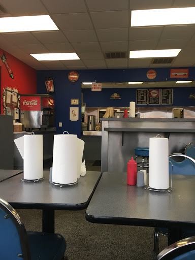Very McDonalds like. Clean. Chili dogs and burgers. Fries were excellent. Nice "diner" decorAverage fast food restaurant.